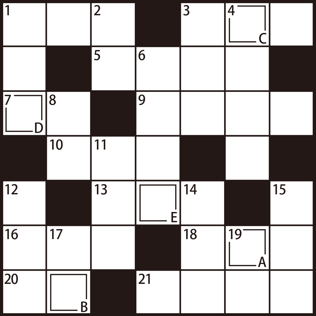 クロスワードパズル内の2重マスA〜Eに入る文字を並べてある単語を導き出しましょう。クロスワードパズルを印刷して挑戦してみましょう。