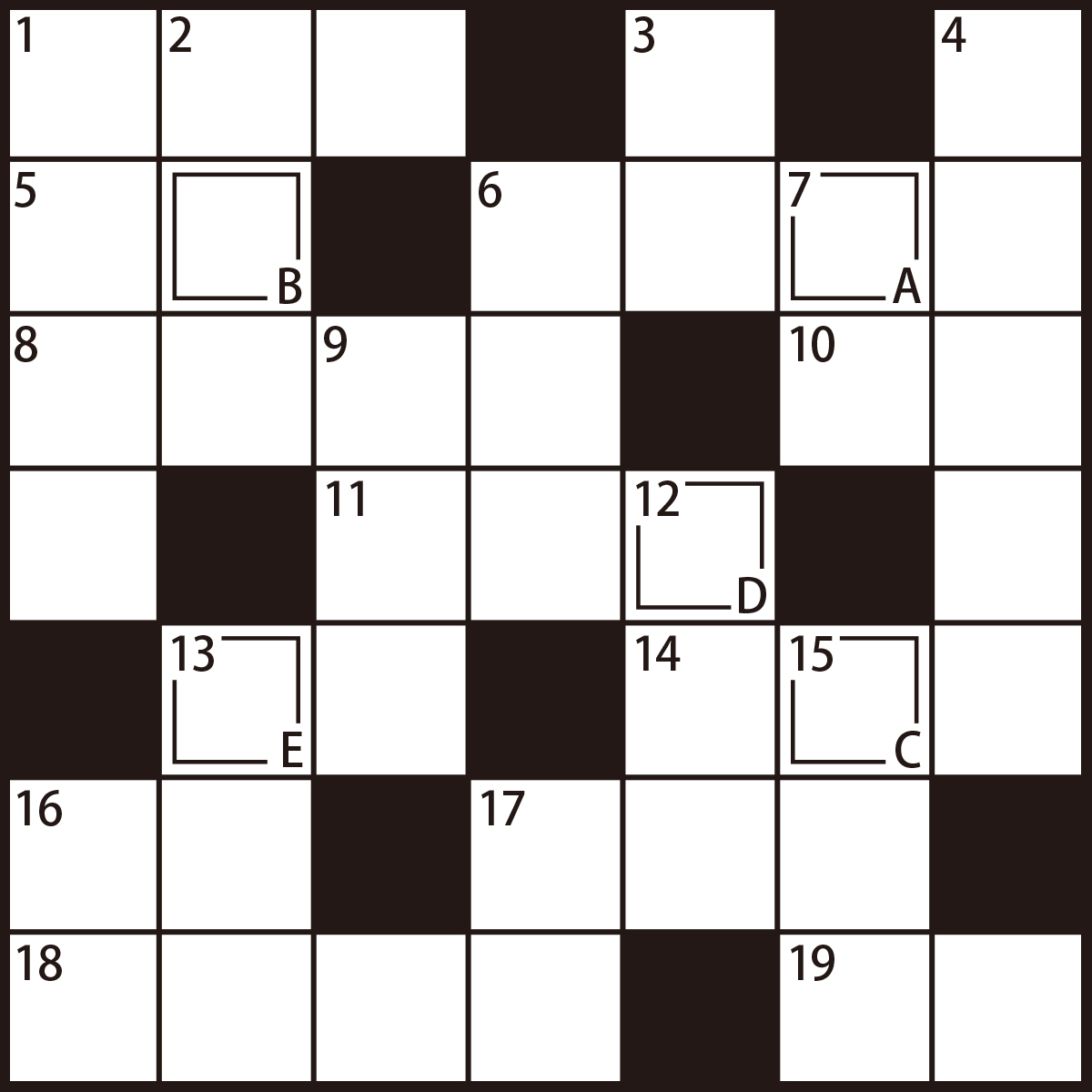 クロスワードパズル内の2重マスA〜Eに入る文字を並べてある単語を導き出しましょう。クロスワードパズルを印刷して挑戦してみましょう。
