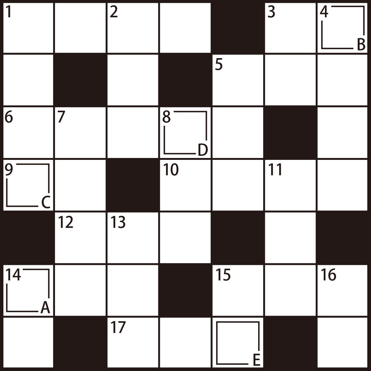 クロスワードパズル内の2重マスA〜Eに入る文字を並べてある単語を導き出しましょう。クロスワードパズルを印刷して挑戦してみましょう。
