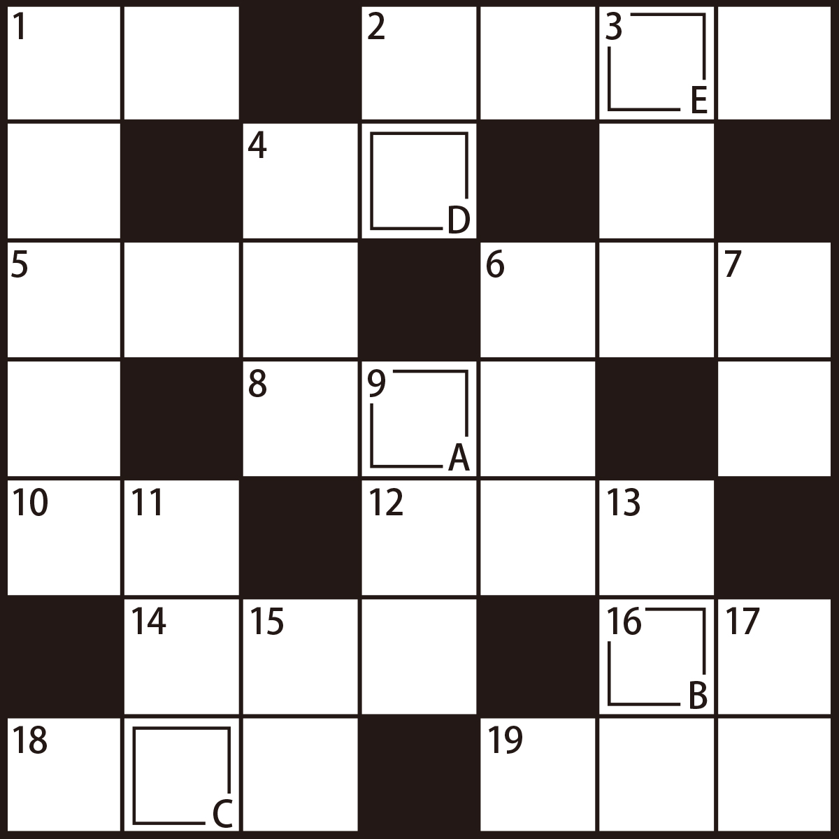クロスワードパズル内の2重マスA〜Eに入る文字を並べてある単語を導き出しましょう。クロスワードパズルを印刷して挑戦してみましょう。