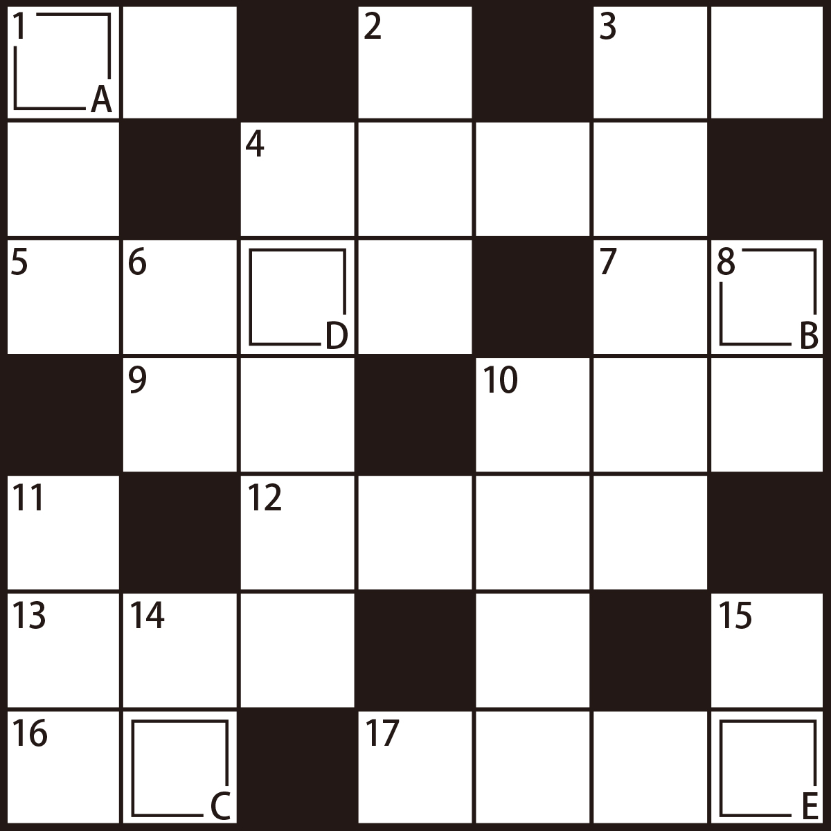 クロスワードパズル内の2重マスA〜Eに入る文字を並べてある単語を導き出しましょう。クロスワードパズルを印刷して挑戦してみましょう。