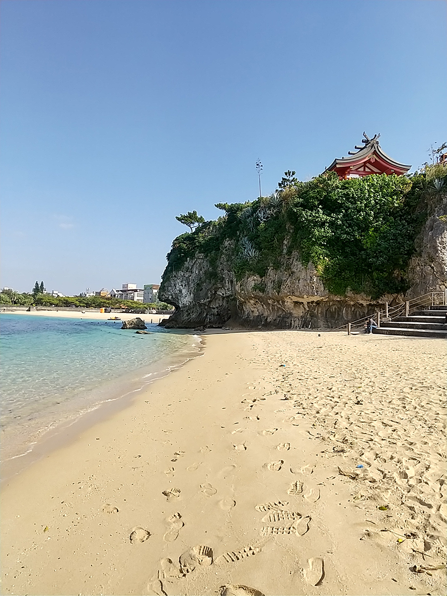 「波上宮」は、その名のとおり、波の上に位置するお宮!マリンブルーの海と朱色の社殿が美しい!