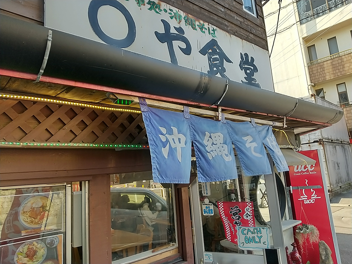波上宮の門前にある「○や食堂」。『孤独のグルメ』で松重豊さん演じる井の頭五郎のように、「このたたずまい、なんかよさそうだぞ…」とつぶやきながら、ふらりと立ち寄りました。
