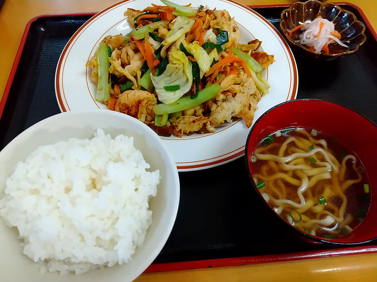 注文したメニューは「フーチャンプル」。小さな沖縄そばも付いてお得感たっぷり。自分好みの濃い目の味付けを堪能しました~。