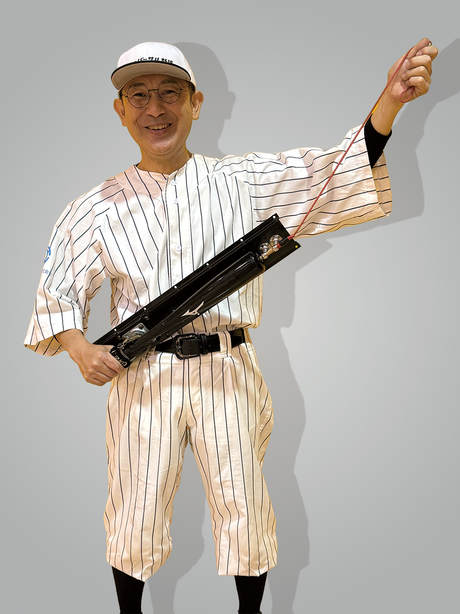 「ユニバーサル野球を構想した当初は、ボールが転がってきたのを打つことを考えました。しかし、なかなかバットに当てることが難しく空振りしてしまうんです。空振りを少なくする方法として、バットの近くでボールが回転するように改良をしました。そのほか、開発当初は木製バットを使っていたのですが、臨場感のある音にこだわりたいと思ったんです。スポーツメーカーのミズノさんのご厚意で、ユニバーサル野球用の小さい金属バットを製作してもらいました。おかげで、バットにボールが当たると〝カキーン〟と気持ちいい打撃音を楽しめるようになりました」