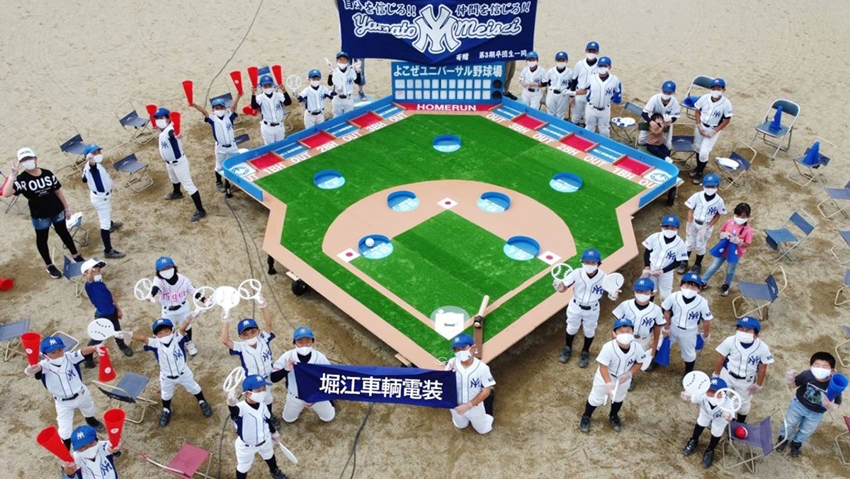 「ユニバーサル野球に関する特許と商標登録を取得して正式に事業化してから、全国の学校授業やイベントに赴いています。20分の1の野球場は簡単に分解できるので、車に積んで現地で組み立てています。最初の頃は、すべて1人で運んで組み立てていたので大変でした。それでも、理念に共感してくれるボランティアの方たちの協力もあって続けられています。おかげさまで、ユニバーサル野球を体験した人は2000人を超えました。最近は特別支援学校だけでなく、小学校からの開催依頼も増えています」