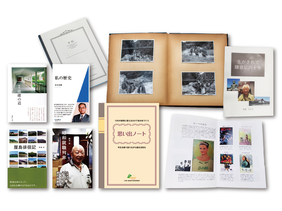 「自分史の制作が新しい事業になると思った私は、自分史を書籍化する『毎日思い出ブックス』というレーベルを立ち上げました。ところが、実際に自分史の執筆を依頼すると、『昔の出来事を思い出すことができない』と悩まれる方がおおぜいいらっしゃったんです。その解決になったのが、認知機能の低下を防ぐ方法として予防財団が提唱している『回想法』です。昔の出来事や経験などを思い出すことで脳を活性化し、自己肯定感を高める回想法は、医学的にも認知症の予防効果が認められています。人間の脳は加齢や認知症の影響を受けると近時記憶がなくなり、古い記憶が残りやすいといわれています。回想法を応用すれば、自分の半生を振り返る自分史の制作に役立ち、さらには認知症予防にもなると思って考案したのが『思い出ノート』です」