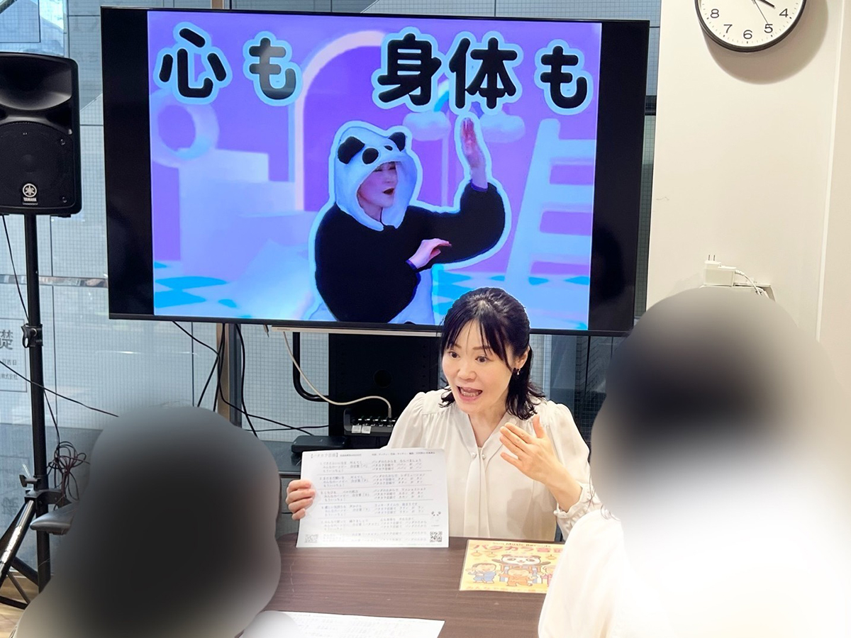 講演・イベントでは、振付動画をテレビ画面やスクリーンに映しながら進行します。お気軽にご相談ください。