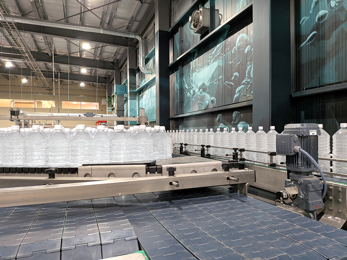 また、高速道路のインターチェンジが近くて物流の便がよいことや、周囲に民家が少なく工場として適した立地であることなど、あらゆる環境要因が安曇野ミネラルウォーターの将来性を後押ししたことも見逃せません。結果として、創業間もない会社が、大手コンビニエンスストアのPB商品を受託することになった事実は、業界内でも〝奇跡〟といわれる逸話になっています。ファミリーマートの担当役員が初めて安曇野の水を口にした記念すべきシーンは、安曇野ミネラルウォーターの象徴として、新井さんのオフィスの壁画に描かれています。