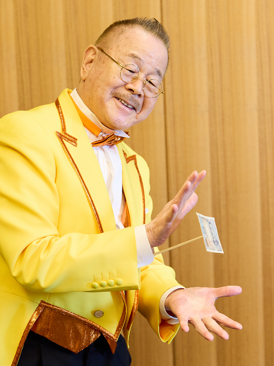 茨城弁を生かした独特のおしゃべりマジックでおなじみのマギー司郎さん。病欠を一回もせずに現在もステージでひょうひょうと笑いを取り、観客から喝采を浴びる日々を送っています。トレードマークの黄色いえんび服で取材会場に現れたマギー司郎さんに、いつまでも第一線で活躍しつづける秘訣をお聞きしました!