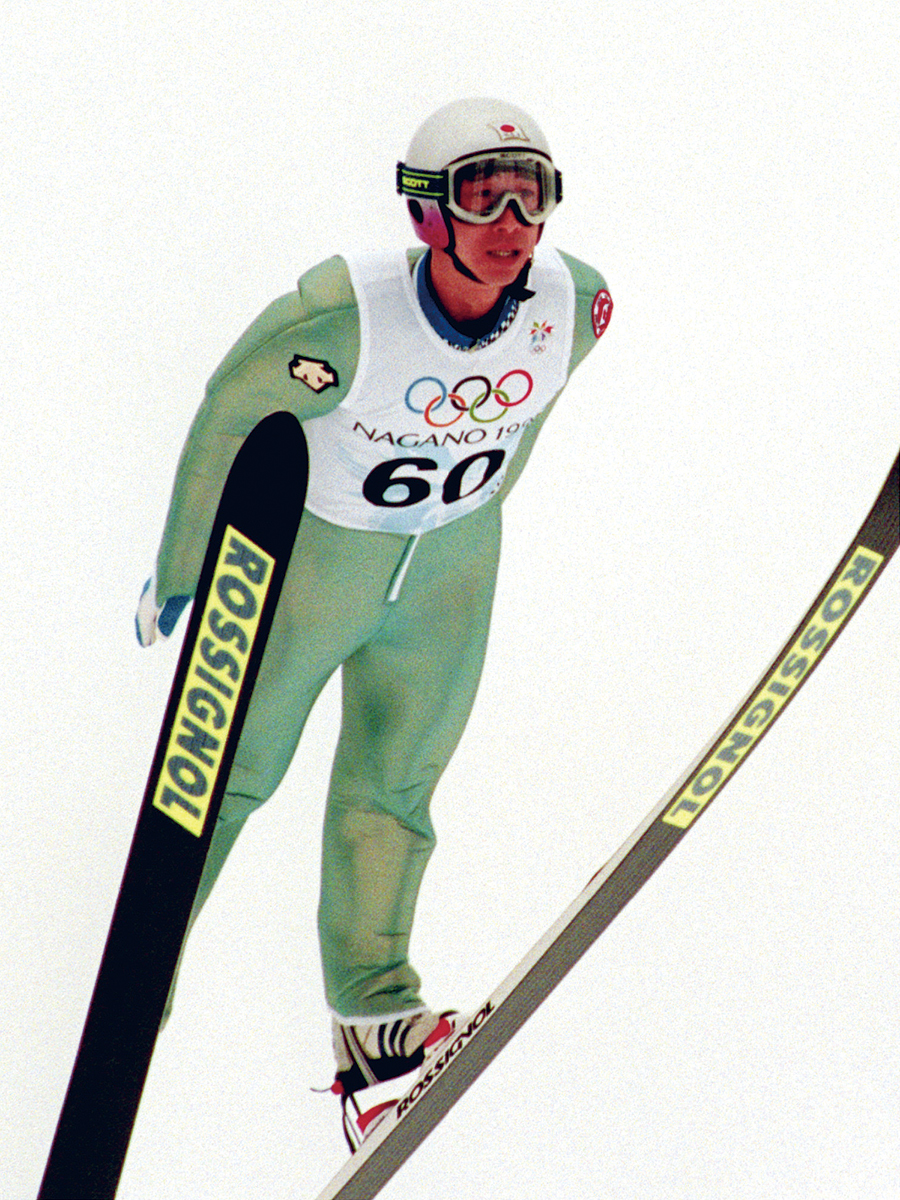 今ではスキー板をV字に開いて飛ぶのが当たり前になっていますが、かつてはみんな、板を真っすぐ平行にそろえて飛ぶのがセオリーでした。
