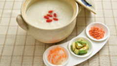 じっくりと30分ほど炒めたタマネギと鶏のだしを混ぜ合わせた野菜スープに、スープのだしで使った鶏をほぐしたチキンサラダ、目玉焼き、ベーコン、フランスパンなどをよく食べます。メニューの好き嫌いもありません。