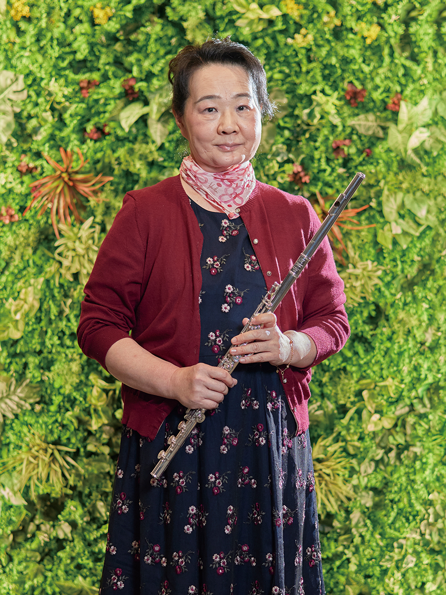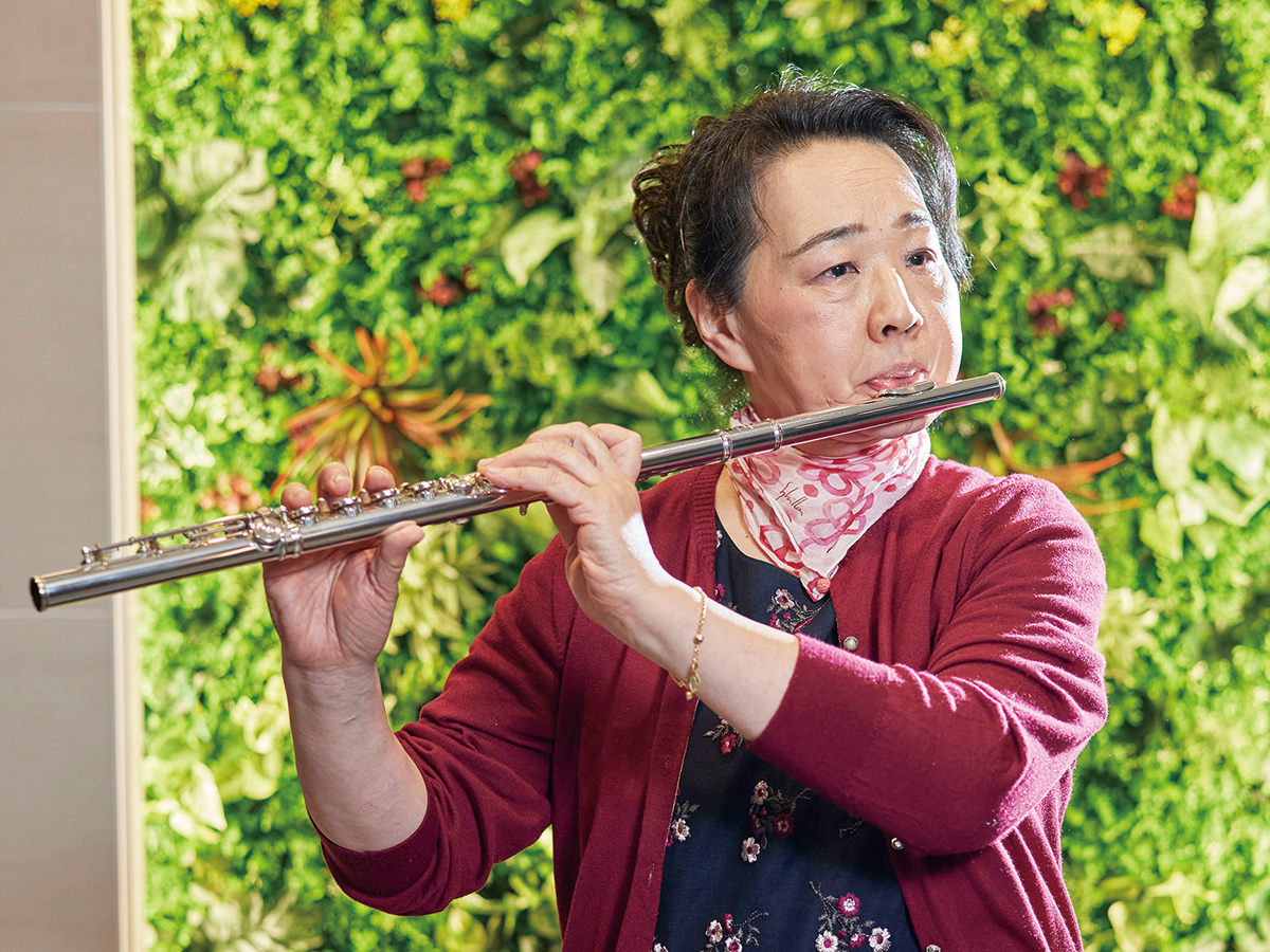 初めて見学しに行った4月の定例会で、女性のメンバーがすぐに話しかけてくれ、グループチャットにも入れてもらいました。一気にお友だちが増えて、その場で入会を即決。入会して「世界が広がった」と感じました。患者会では順番にスピーチをするのですが、私だけしゃべれないので、入会した2024年5月から月1回の定例会で、スピーチの代わりに拙いフルート演奏を聴いてもらっています。人と関わって、フルート演奏を褒めてもらって、月1回東京に通うことは大きな楽しみと張り合いになりました。悠声会会長の鈴木晄夫さんの「過去は振り返らないことですよ」という簡単に聞こえるけれど深いお言葉は、私の新たな支えとなっています。